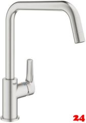 Einhebel-Küchenarmatur mit Festauslauf Hochdruck Normalstrahl Umwelttechnologie EcoSmart Oberfläche: Edelstahl Finish