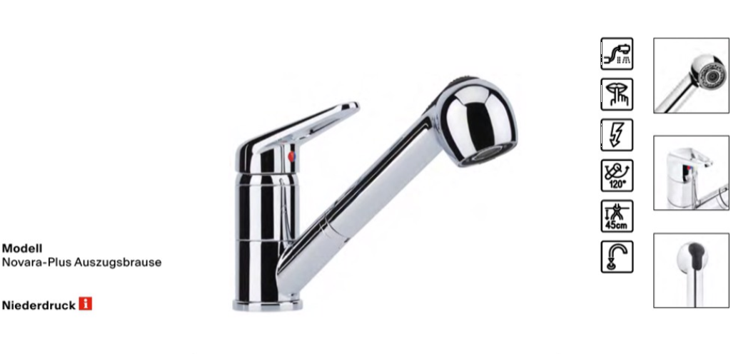 FRANKE Küchenarmatur Novara Plus Einhebelmischer Chrom mit Zugauslauf und Brausefunktion Niederdruck