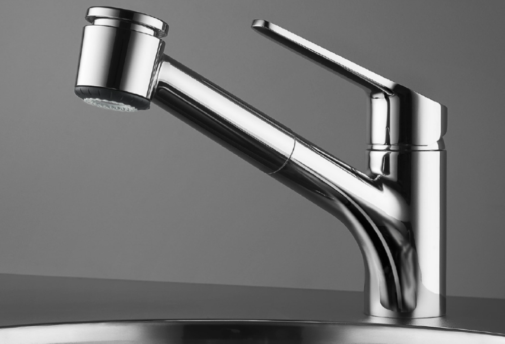 Einhebelmischer mit Zugauslauf Niederdruck-Armatur Oberfläche: Chrom mit schwenkbarem Auslauf