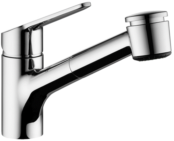 Einhebelmischer mit Zugauslauf und Brausefunktion Niederdruck-Armatur Oberfläche: Chrom mit schwenkbarem Auslauf