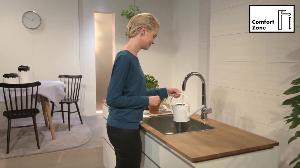 Dank ComfortZone bietet Ihnen schon die Höhe des Auslaufs großen Freiraum. Noch mehr Spielraum erhalten Sie mit einer Ausziehbrause: Sie erweitert Ihren Aktionsradius um bis zu 76 cm, in Kombination mit der innovativen sBox. Mit einem Schwenkauslauf kann die Spültischarmatur zusätzlich um 110, 150 oder um ganze 360 Grad gedreht werden. So lassen sich auch große Töpfe einfach befüllen und reinigen.