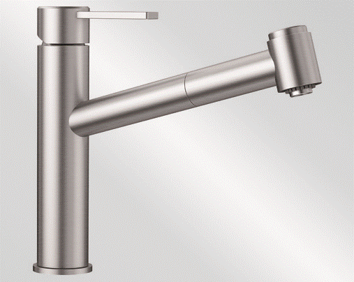 BLANCO Küchenarmatur Ambis-S Edelstahl massiv Einhebelmischer mit Zugauslauf mit Brausefunktion Niederdruck