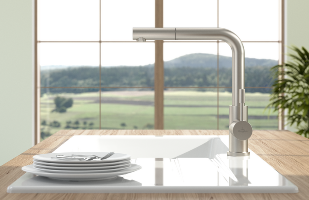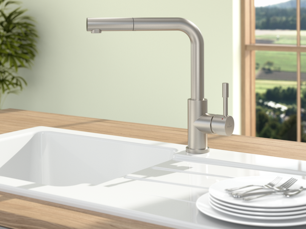 Einhebelmischer Altos S Zugauslauf Küchenarmatur / Spültischarmatur Material: Edelstahl Massiv
