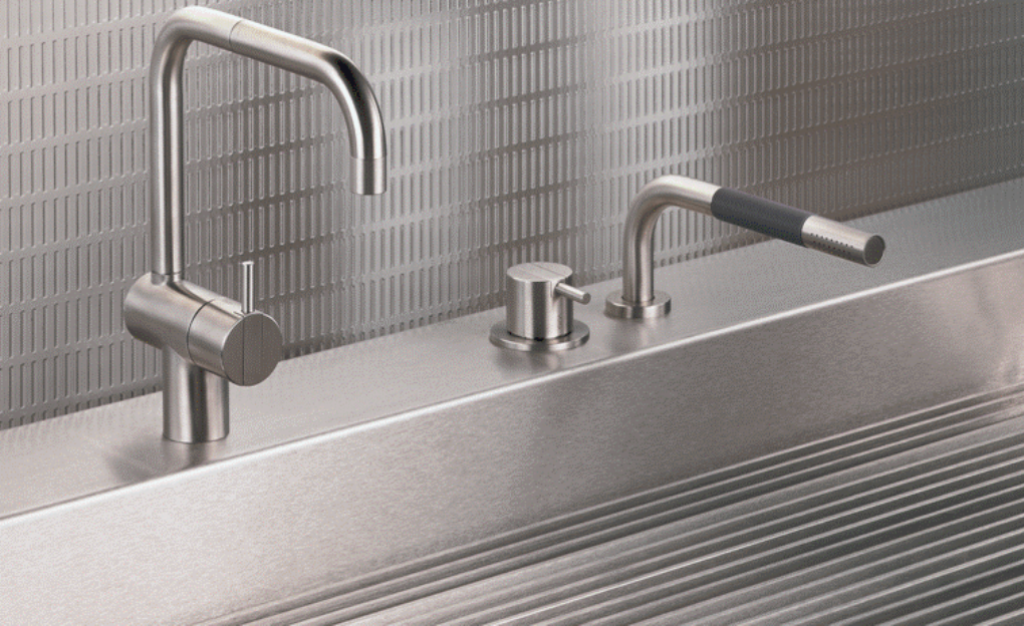 Einhebelmischer mit Festauslauf Hochdruck Material: Edelstahl massiv schwenkbarer Auslauf