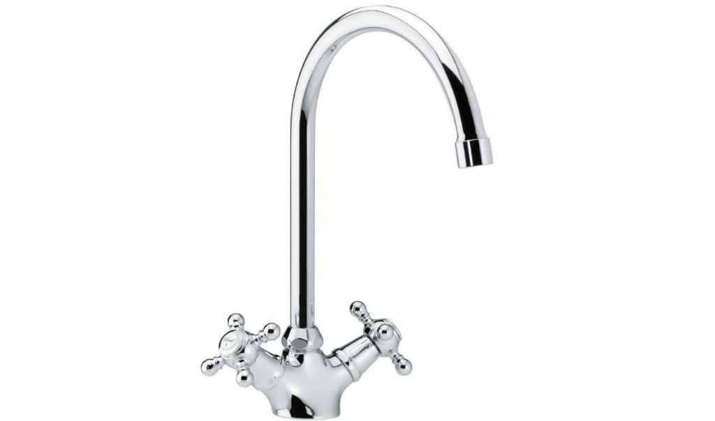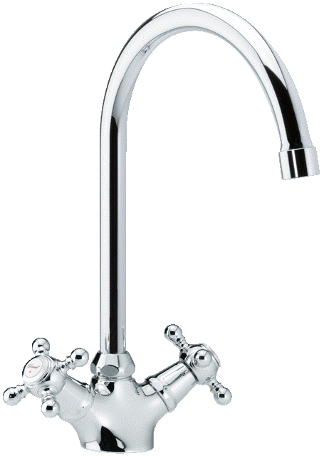 Spültischarmatur / Küchenarmatur Hochdruck Zweigriffmischer in Nostalgieoptik Auslauf 120° schwenkbar Oberfläche: Chrom