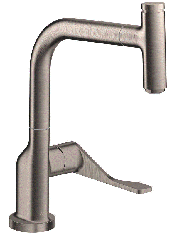 Einhebel-Küchenarmatur mit Zugauslauf Hochdruck mit Ausziehauslauf und Select-Knopf Oberfläche: Edelstahl Finish