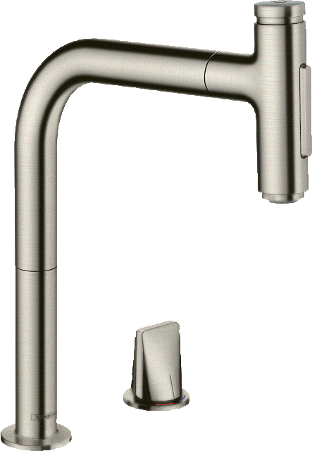 HANSGROHE Küchenarmatur Metris Select M71 Edelstahl Finish 2-Loch Einhebelmischer 200 mit Ausziehbrause, 2jet (73819800)