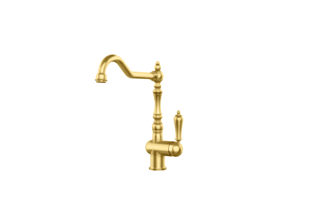 Einhebelmischer mit Festauslauf Hochdruck Küchenarmatur / Spültischarmatur Nostalgieoptik Oberfläche: Mattgold