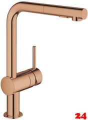 Einhebelmischer Pescara J Auszugsbrause Hochdruck mit 2-Strahl Brausefunktion / Laminar- und Brausestrahl Material: Edelstahl massiv Oberfläche: Copper