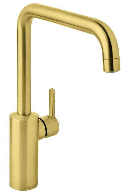 Einhebelmischer / Küchenarmatur Hochdruck Auslauf 120° schwenkbar Oberfläche: Messing gebürstet