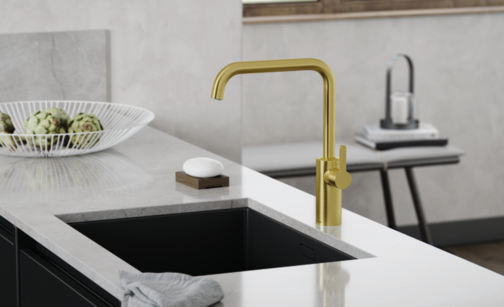SCHLANK. SKANDINAVISCH. ATTRAKTIV. Küchenarmatur mit Festauslauf Einhebelmischer Hochdruck Messing gebürstet.PVD-Beschichtung