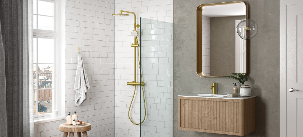Einhebelmischer / Waschtischarmatur Hochdruck Badarmatur Auslauf fest Oberfläche: Messing gebürstet