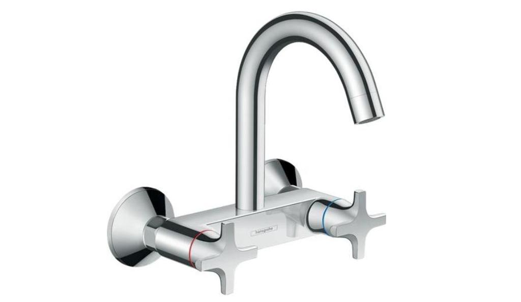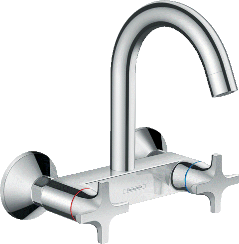 HANSGROHE Küchenarmatur Logis M32 Chrom 2-Griffmischer für Wandmontage Highspout, 1jet 360° schwenkbarer Auslauf (71286000)