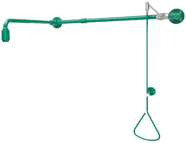 - Notdusche als Körperdusche mit Zugstangenbetätigung (plombierbar), für die Aufputzmontage im Türbereich