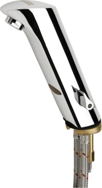 PROTRONIC-S netzunabhängige, opto-elektronisch gesteuerte Waschtisch-Mischbatterie DN 15, Armaturengruppe I, mit Temperaturwahlhebel und Luftsprudler mit integriertem Durchflussmengenregler, geeignet für Nassräume. Zum Anschluss an Warm- und Kaltwasser.
