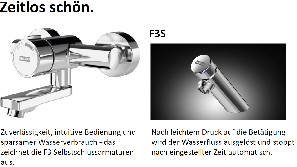 - Modell: KWC PROFESSIONAL F3S-Mix Selbstschluss Wandbatterie F3SM1003