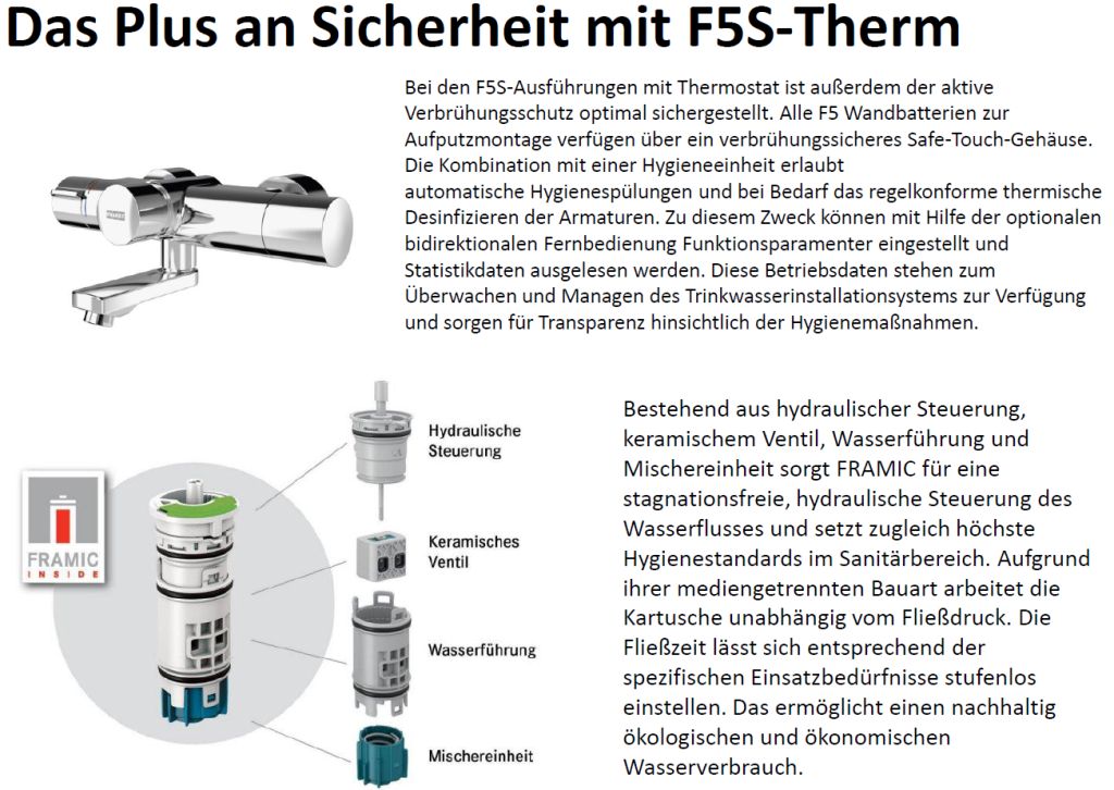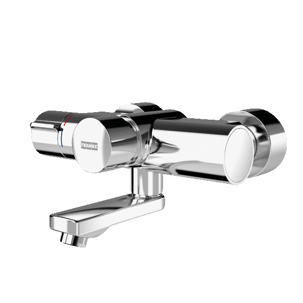 KWC F5S Wandbatterie F5ST1001 Hochdruck Selbstschluss Thermostat Waschtisch-Armatur mit Vorrichtung für optionale Hygieneeinheit