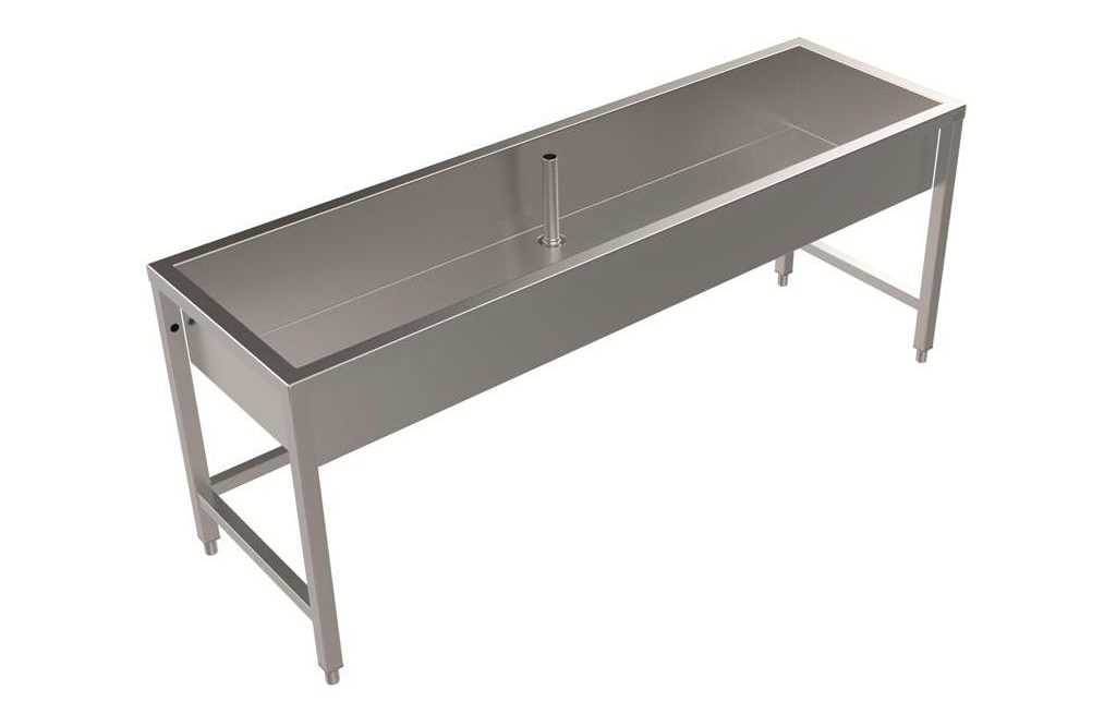 DREILICH Arbeits-/ Mehrzweckbecken mit Unterbau vorgesehen zur Aufstellung auf Boden Abmessungen: Außen - 2000 x 250 x 600mm (B x H x T) Abmessungen: Innen - 1910 x 250 x 510mm (B x H x T) Gesamthöhe: 800mm Material: 1.4301 CNS V2A