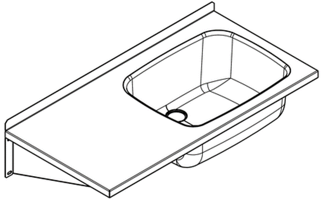 70 mm (T), hintere Aufkantung 40 mm (H), Ablauf hinten mittig, Ablagefläche links