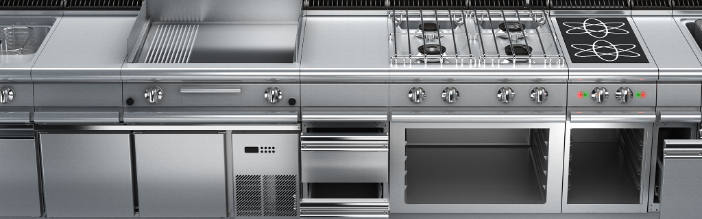 Alle Teile sind vollständig aus Chromnickelstahl 1.4301 (AISI304) gefertig. Andere Werkstoffe werden nur dann verwendet, wenn diese für die Funktion vorteilhafter sind bzw. es in der Beschreibung erwähnt wird. Schweißnähte und Schweißpunkte sind im sichtbaren Bereich geputzt und werden, sowie erforderlich, mit dem angrenzenden Material verschliffen. Standgeräte sind immer mit höhenverstellbaren Füßen ausgestattet. Zwischenböden sind, sofern nicht anders angegeben, höhenverstellbar.
