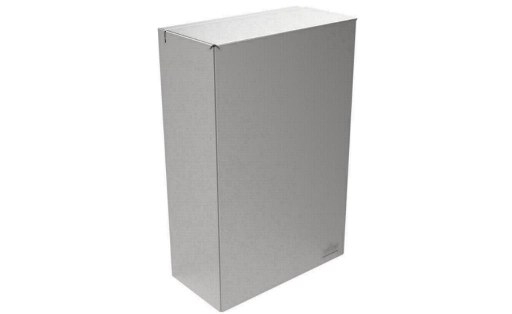 Unser klassischer Abfallbehälter mit Deckel aus Edelstahl Werkstoff 1.4301, mit einer Materialstärke von 1 mm. Die gekantete und geschweißte Konstruktion mit Einhängeleiste und mit Aufnahmevorrichtung für Abfallbeutel, ist oben offen und zur verdeckten Montage an die Wand (Befestigungsmaterial ist inklusive). Die Oberfläche ist fein matt gebürstet und der Boden mit Öffnungen zum Ausspritzen geeignet. Fassungsvermögen ca. 16 Liter