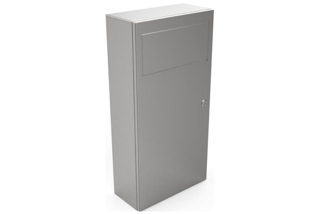 Dieser gekantete und geschweißte Abfallbehälter aus Edelstahl Werkstoff-Nr. 1.4301 mit einer Materialstärke von 1mm, verfügt über eine Tür und eine selbstschließende Schwingklappe und ist zur Auf- und Unterputzmontage geeignet. Die Tür ist abgekantet, auswechselbar durch Spezialscharniere (komplett verdeckt) und verfügt über ein flaches Zylinderschloss mit Edelstahlkappe, die Schlüsselöffnung ist geschützt durch Federblech Innen-Korb Fassungsvermögen ca. 12,5 Liter