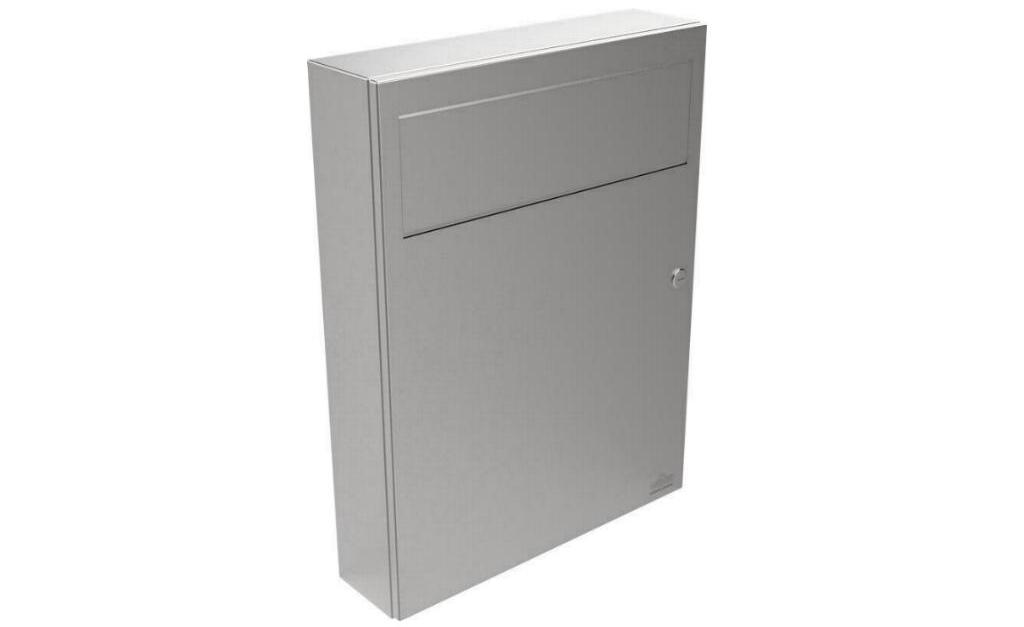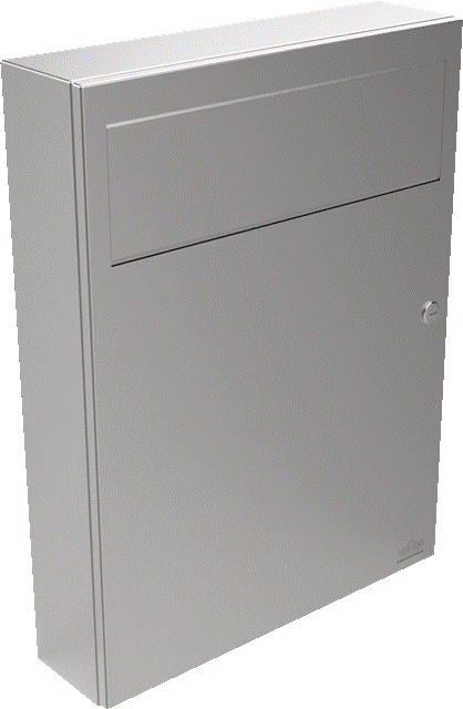 Dieser gekantete und geschweißte Abfallbehälter aus Edelstahl Werkstoff-Nr. 1.4301 mit einer Materialstärke von 1mm, verfügt über eine Tür und eine selbstschließende Schwingklappe und ist zur Auf- und Unterputzmontage geeignet. Die Tür ist abgekantet, auswechselbar durch Spezialscharniere (komplett verdeckt) und verfügt über ein flaches Zylinderschloss mit Edelstahlkappe, die Schlüsselöffnung ist geschützt durch Federblech Innen-Korb Fassungsvermögen ca. 16,5 Liter