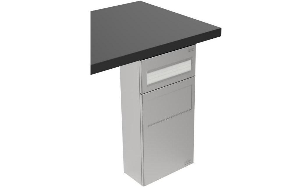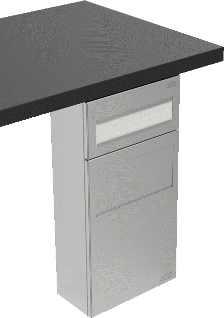 • kombiniert mit einem Abfallbehälter mit Tür und Schwingklappe,mit abgekanteter Tür auswechselbar