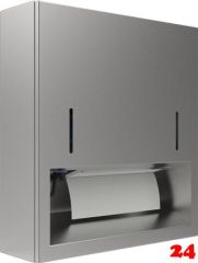 DREILICH Papierhandtuch / Seifenspender-Kombination 9120205-C für ca. 500 handelsübliche Papierhandtücher für 0,5 Liter Seife Einwegflaschen, mit Vorratsbehälter vorgesehen zur verdeckten Wandmontage Material: 1.4301 CNS V2A