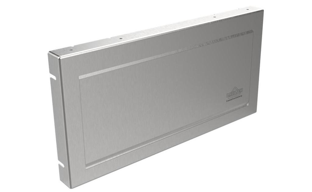 DREILICH Abfall-Abwurfklappe 9100302 Oberfläche fein matt gebürstet, zur flächenbündigen Montage zum Einbau in Waschtischschürzen oder Möbelfronten Material: 1.4301 CNS V2A