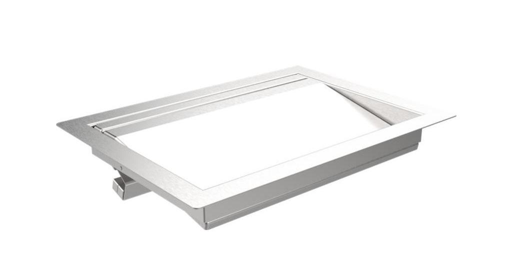 DREILICH Abfall-Abwurfklappe 9100302 Oberfläche fein matt gebürstet, zur flächenbündigen Montage zum Einbau in Waschtischschürzen oder Möbelfronten Material: 1.4301 CNS V2A