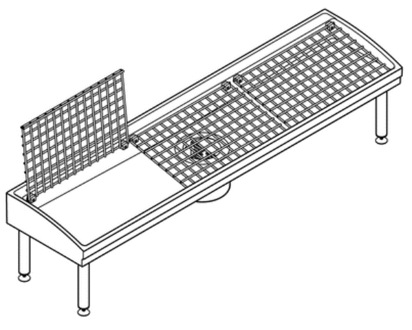 - je Reinigungsplatz ein klappbarer Gitterrost aus CNS