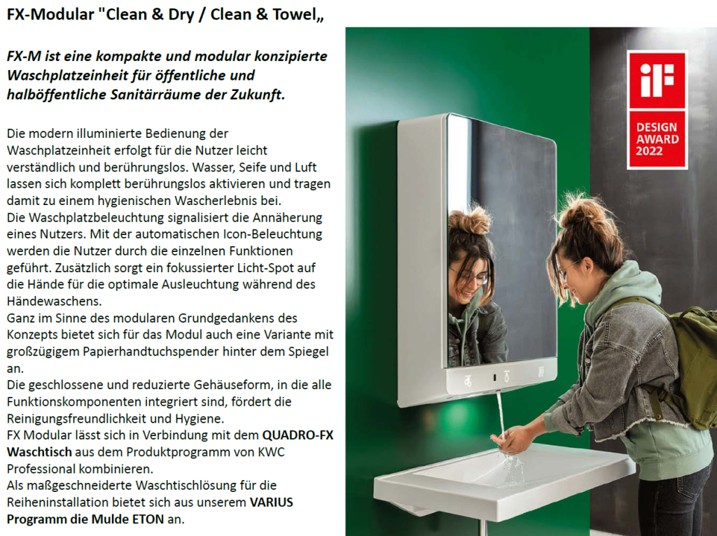 KWC FX-M Waschplatzeinheit FXCT1001M berührungslos opto-elektronisch gesteuert für öffentliche und halb-öffentliche Bereiche ALL-IN-ONE Komplettlösungen