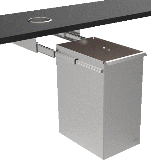 DREILICH Abfallbehälter Montage unter Waschtischplatten 9100400-2 nach vorne komplett ausfahrbar, mit Vollauszug Material: 1.4301 CNS V2A