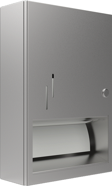 Papierhandtuchspender zur verdeckten Wandmontage mit flachem Zylinderschloss