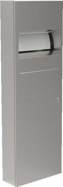 Papierhandtuchspender / Abfallbehälter-Kombination zur verdeckten Wandmontage mit flachem Zylinderschloss und durchgehender Tür