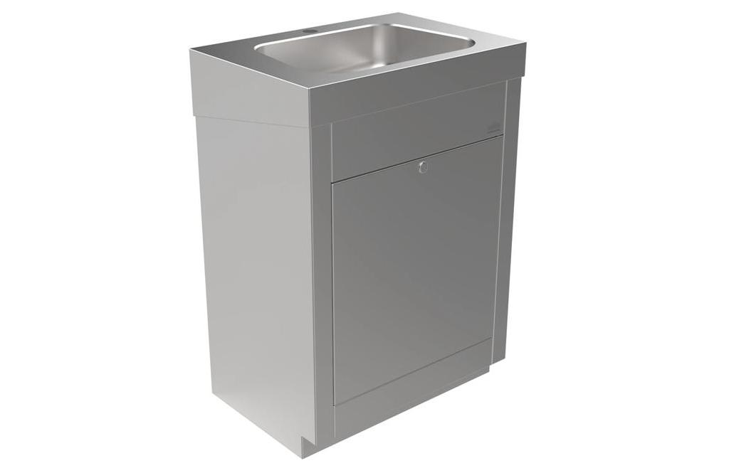 - Einzelwaschtisch mit Unterschrank zur bodenstehenden verdeckten Montage an der Wand, Chromnickelstahl