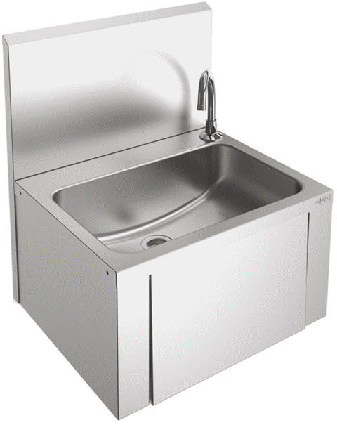 KWC ANIMA Handwaschbecken LLM126 mit Wasserauslauf und Kniebetätigung Material: 1.4301 CNS V2A