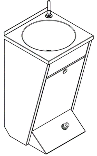 abdeckung mit Selbstschlussarmatur und Fußbetätigung, Wassertemperatur über Mischventil regulierbar, Frontpaneel nach vorne entnehmbar. Ohne Überlauf, mit Siebablaufventil G 1 1/4 B, inklusive Schrauben und Dübel.