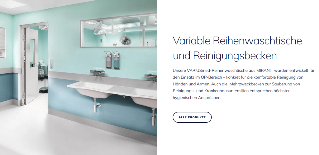 Ärztewaschrinnen SATURN Hygienewaschplatz für Wandmontage nahtlos eingeformte Mulde berührungslos, opto-elektronisch gesteuerter PROTRONIC-A3000 open-Waschplatzarmatur mit zwei Armhebelspendern