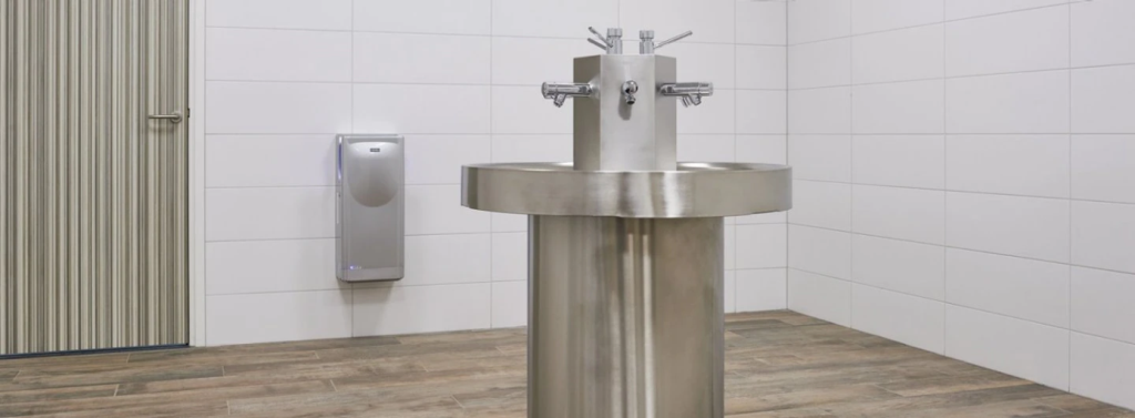 KWC Saturn Rundwaschtisch SANX600 mit 6 Selbstschluss Wandventilen Material: 1.4301 CNS V2A