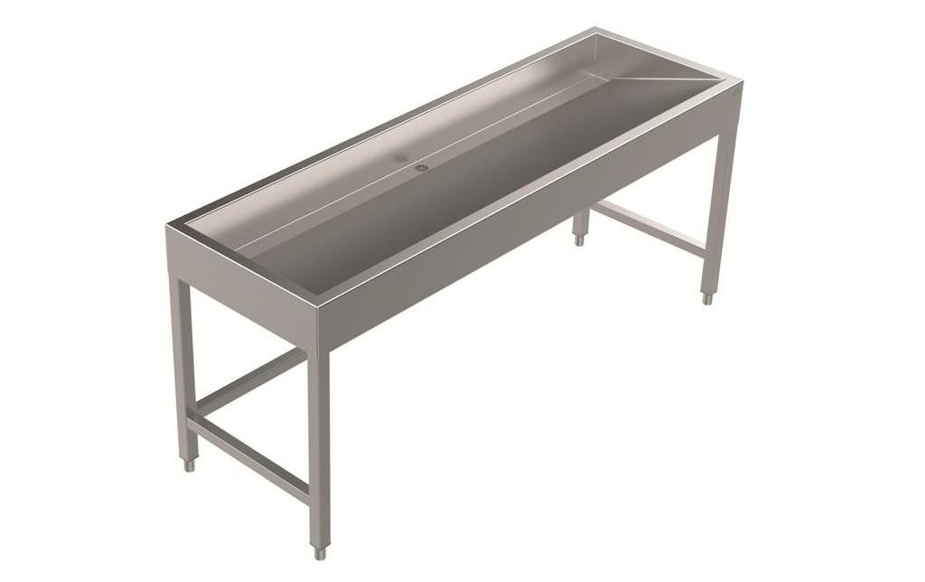 DREILICH Waschrinne 510 UB bodenstehend mit Unterbau ohne Armaturenbank zur Verwendung von Stand- und Wandarmaturen Abmessungen: 1800 x 150 x 570mm (B x H x T) Gesamthöhe: 850mm Material: 1.4301 CNS V2A