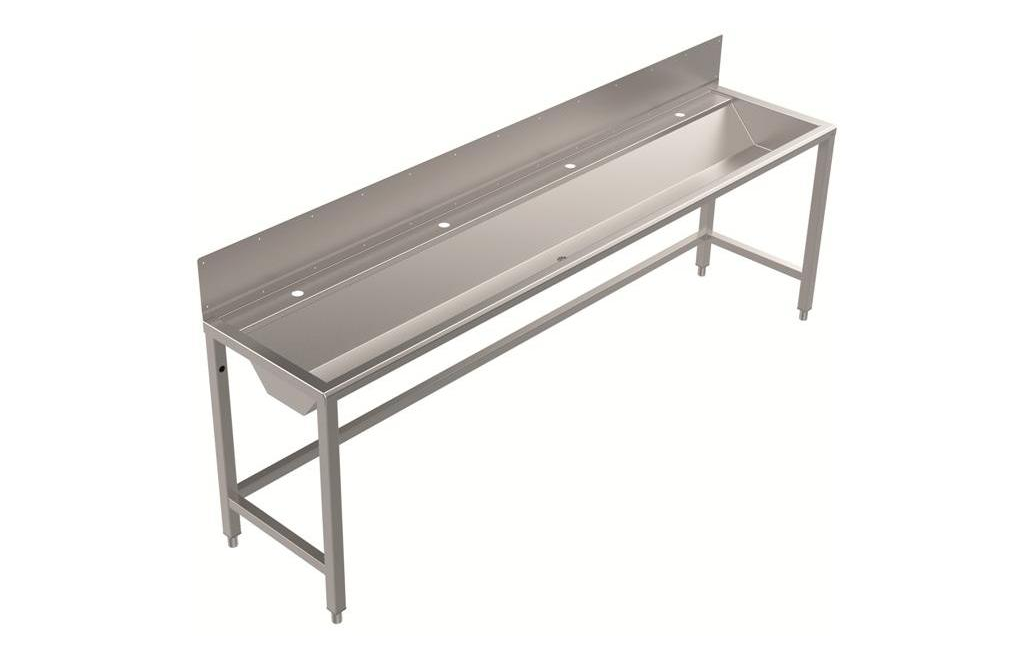- Waschrinne ohne Schürze mit Spritzrückwand bodenstehend, Chromnickelstahl