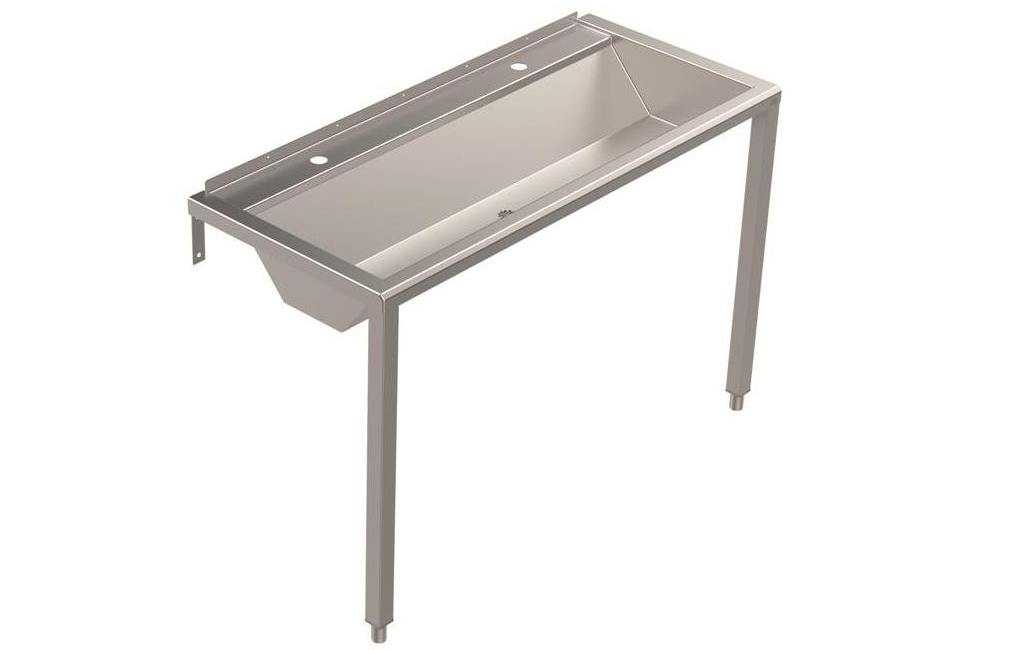 DREILICH Waschrinne 405 WF wandhängend mit Winkelfüßen mit Armaturenbank zur Verwendung von Wandarmaturen Abmessungen: 1400 x 160 x 520mm (B x H x T) Gesamthöhe: 850mm vorgesehen zur Montage an die Wand Material: 1.4301 CNS V2A