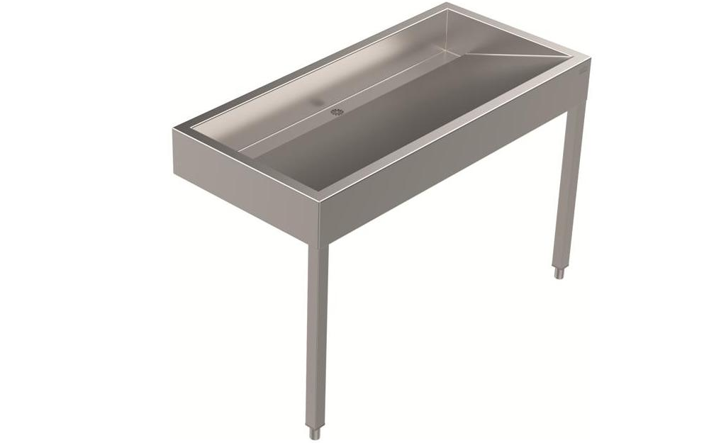 DREILICH Waschrinne 405 WF wandhängend mit Winkelfüßen mit Armaturenbank zur Verwendung von Wandarmaturen Abmessungen: 1400 x 160 x 520mm (B x H x T) Gesamthöhe: 850mm vorgesehen zur Montage an die Wand Material: 1.4301 CNS V2A