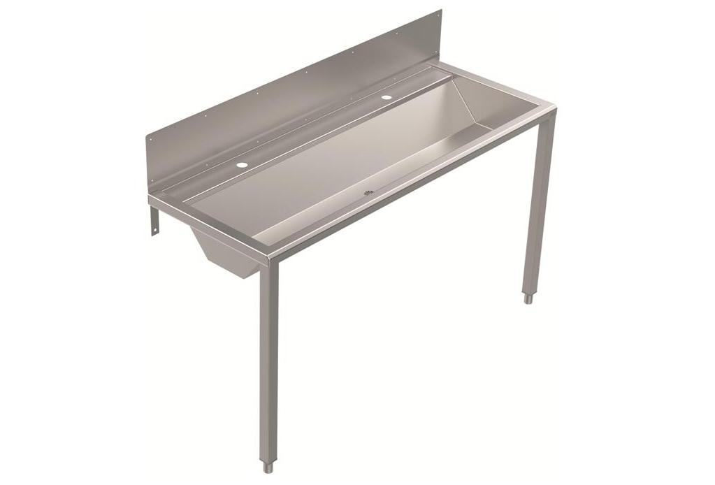 DREILICH Waschrinne 510HB WF wandhängend mit Winkelfüßen mit Armaturenbank zur Verwendung von Wandarmaturen Abmessungen: 2800 x 150 x 570mm (B x H x T) Gesamthöhe: 850mm vorgesehen zur Montage an die Wand Material: 1.4301 CNS V2A