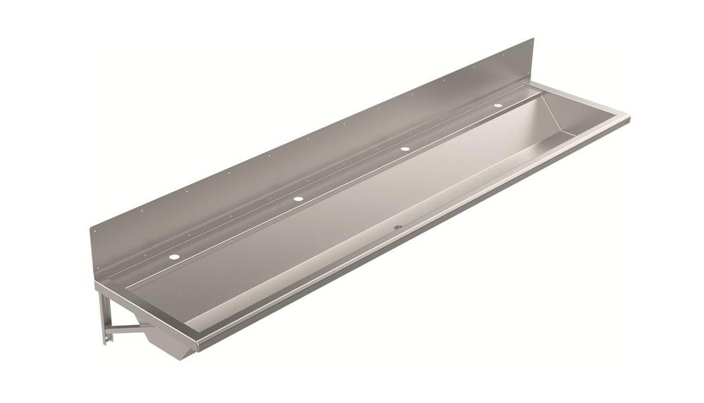 DREILICH Waschrinne 510HB WF wandhängend mit Winkelfüßen mit Armaturenbank zur Verwendung von Wandarmaturen Abmessungen: 1600 x 150 x 570mm (B x H x T) Gesamthöhe: 850mm vorgesehen zur Montage an die Wand Material: 1.4301 CNS V2A
