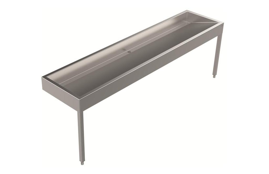 DREILICH Waschrinne 510HB WF wandhängend mit Winkelfüßen mit Armaturenbank zur Verwendung von Wandarmaturen Abmessungen: 1200 x 150 x 570mm (B x H x T) Gesamthöhe: 850mm vorgesehen zur Montage an die Wand Material: 1.4301 CNS V2A