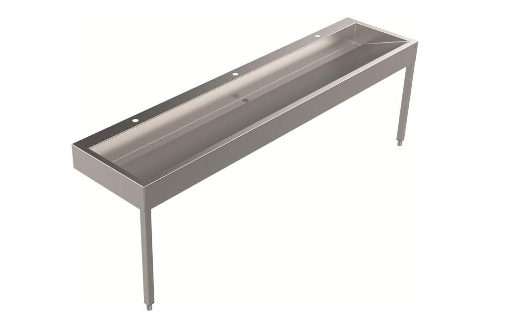 DREILICH Waschrinne 510HB WF wandhängend mit Winkelfüßen mit Armaturenbank zur Verwendung von Wandarmaturen Abmessungen: 2400 x 150 x 570mm (B x H x T) Gesamthöhe: 850mm vorgesehen zur Montage an die Wand Material: 1.4301 CNS V2A