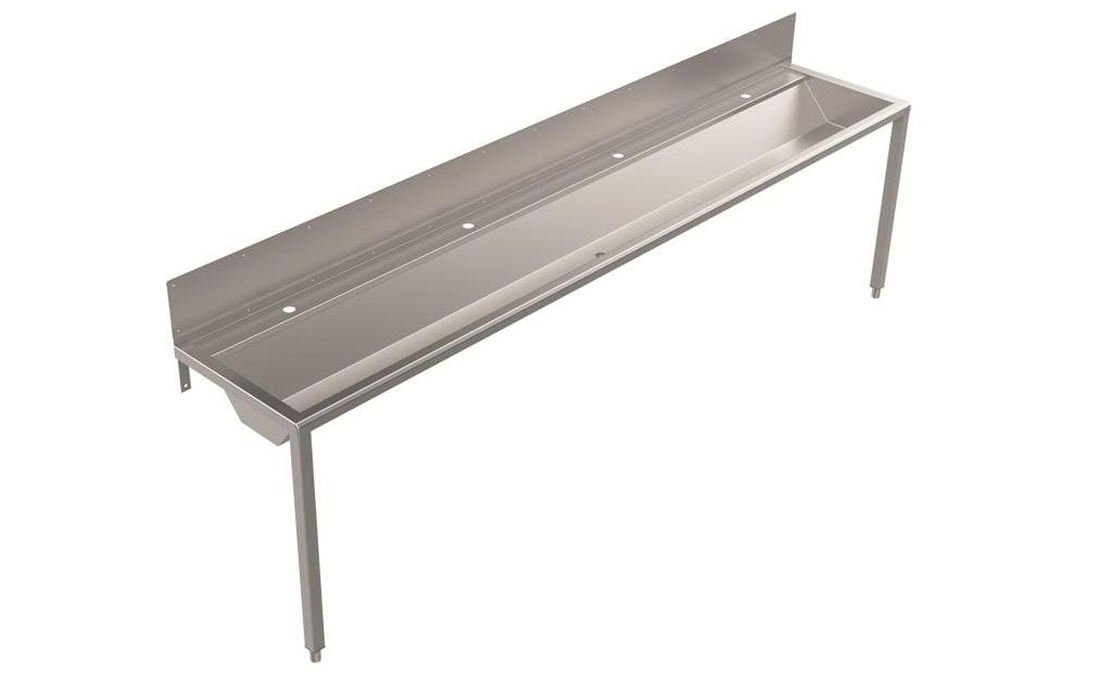 DREILICH Waschrinne 510HB WF wandhängend mit Winkelfüßen mit Armaturenbank zur Verwendung von Wandarmaturen Abmessungen: 2800 x 150 x 570mm (B x H x T) Gesamthöhe: 850mm vorgesehen zur Montage an die Wand Material: 1.4301 CNS V2A